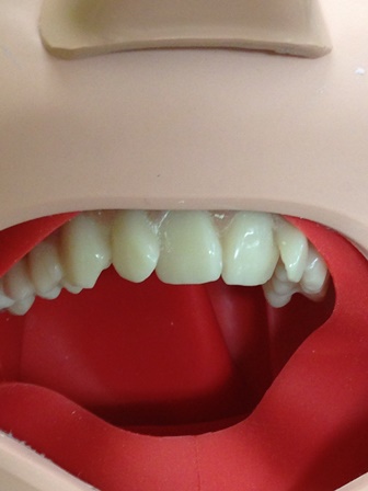 写真はラミネートベニアの実習で、一回で歯並びをきれいにした模型です。
